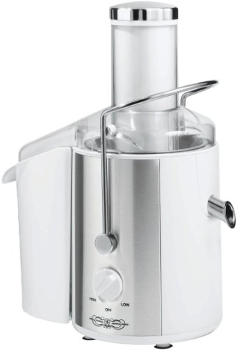 In my search for a juicer, I borrowed this model from a friend. It is a centrifugal juicer with two speeds, high and low. It has a feed chute wide enough for three carrots or a small apple. The motor is powerful and quiet. It made juice with carrots, celery, cucumber, parsley, ginger, and lemon with no difficulty. I also frequently made pomegranate juice by dropping the seeds down the chute with the motor running on low for fabulous fresh pomegranate juice (takes a while to remove the jewel seeds from the pith, but the juice was great). The pulp bin contained only the seeds by doing it this way. I found that when I put the seeds in the chute before I turned on the machine, I got a lot of juicy pulp, but by dropping them in after the motor was running I got a lot of juice and the pulp bin full of dry seeds.Like all juicers it has a large footprint on counter space. It comes with a covered pitcher that prevents the juice from splattering the kitchen. The pitcher also has a foam-skimmer top. The pulp bin snuggles up to the motor base (line the bin with a produce bag to avoid having to wash it).The two things that I didn't care for were the plastic juice catcher part and the difficulty in taking it apart to clean. The part that catches the juice inside the machine is made of white plastic that stains easily from brightly pigmented fruits and vegetables. I would have preferred it to be made of stainless steel. That is only a cosmetic issue, but it was very hard to take the juice strainer out of the housing to clean the pieces. I had to lift up the spout and back of the catch basin to wiggle it out. This is why I removed one star from an otherwise excellent machine. I would avoid making juice because I didn't want to take it apart and clean it.For the price it is an excellent juicer, but it might be worth paying extra money to get one that comes apart easily to clean if you are going to be using it everyday.PROS:Very quietPowerful motorExtracts a lot of juiceCONS:Hard to take apart to cleanUPDATE 2/24/12I ended up purchasing a Breville reconditioned Ikon for about $100 here on Amazon. It is really easy to take apart and clean, BUT it doesn't juice as well as the BellaCucina. Even on the lowest speed it can't do pomegranates. When I feed it leafy greens I just end up with a bin full of vegetable slaw. Hmmmm. Also, Breville is reluctant to stand by warranty. I dropped the juice collector (the part the shredder basket sits in) and it broke the first day I had the machine. Breville did replace the part, but let me know they were doing me a big favor, since parts aren't covered.