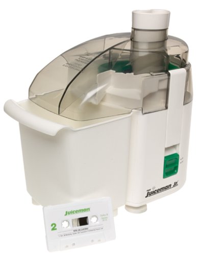 Getting 5 servings of fruits and vegetables each day is a little easier with the Juiceman Jr. juice extractor. Stainless steel blades and a high-tech, micro-mesh basket make pulp-free juice any time of day. Even juices rinds, stems and seeds (yes, some of these are actually good for you and taste good, too). Features a clear, high-impact dome. Snap-apart components for easy cleanup and reassembly. Comes with food plunger, large pulp receptacle, audio cassette with juicing tips, and a fresh juice recipe book and menu planner. Imported. 12Hx16Wx8D".