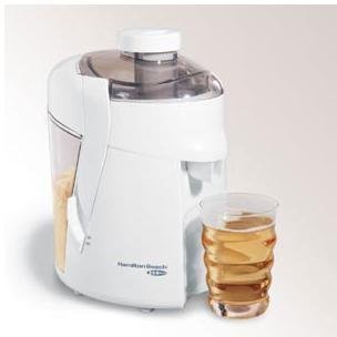 Whether you are heading to work or to the gym, this Hamilton Beach HealthSmart juice extractor has a powerful 350 watts to produce juice from your favorite fruits and vegetables while you rush. The convenient spout sends juice right into your serving glass or to-go mug. If you have time to experiment, there are 25 recipes included. Features a durable stainless steel cutter/strainer that separates pulp from juice for high-performance extraction and a large, removable pulp bin that snaps out for emptying and dishwasher cleanup. White with clear top hatch. Imported