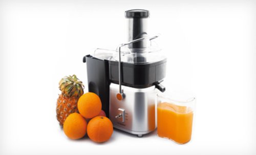 Fresh fruits and vegetables synchronize dive into E-Ware's high-powered juicer. 700 watts of power fuel the appliance as it blends produce such as apples, melons, spinach, and carrots into deliciously smooth beverages. Turned on by an easy-to-use switch that toggles between high and low speeds, the juicer operates at a low-noise hum. A filter disc catches seeds and stems as the healthful serum flows into the included juice container. Its stainless-steel housing provides a durable exterior with a sleek design that does not draw attention away from gingerbread-house kitchens.
