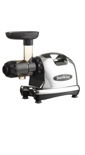 Well let me first start by saying I do not normally write reviews, in fact this is my first time, but in this case I felt compelled. I reviewed many juicers, slugging through hours of reviews before I determined which juicer to buy. I am new to juicing but I had researched and knew that 1. I wanted a masticating juicer 2. had to be able juice wheatgrass. After researching them all I kept coming back to the Sunkist. I had read other reviews about masticating juicers and many people complained of the noise, let me say this machine is very quiet, other reviews also complained that masticating juicers were painfully slow, this one is very speedy. Also this bad boy really juices, the pulp is very dry so I know it is extracting all of the liquid. And perhaps most important, at least in my buying decision, is that the cleaning is a breeze, literally in 5 minutes I have it taken apart and washed and put away.