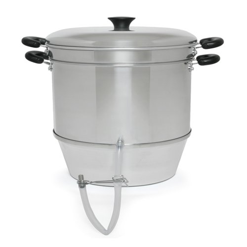 Extract the natural juice of grapes, berries, and other high-liquid fruits with the power of steam. Just boil water in the bottom container and place fruit in the top container. Natural concentrated fruit juice drips in the center pan, where it can be extracted through a heat-resistant tube. Use it for making jellies or store as concentrate for healthy natural fruit juice. The Steam Juicer is also perfect for cooking soups and stews or steaming vegetables.