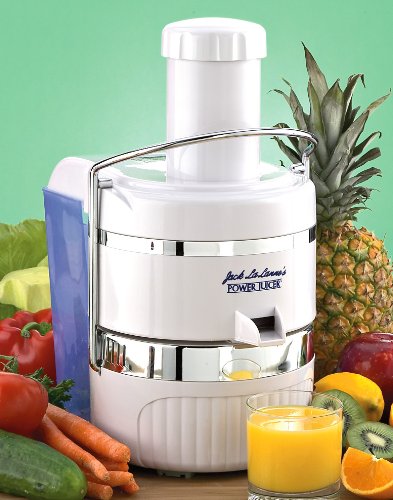 Turn fresh fruits and veggies into healthy drinks with the Jack LaLanne Power Juicer, and SAVE BIG! As seen on TV! Fitness guru Jack LaLanne once swam from Alcatraz Island to Fisherman's Wharf. He did it handcuffed, shackled and towing a half-ton boat. He was 60 at the time. These days he's still going strong and fit as a fiddle at 94, and he swears this Juicer is the reason why! Commercial-quality machine extracts the vitamin and nutrient-rich juice from fruits and veggies, providing you with a concentrated source of energy, vitality and nutrition that's also delicious. We think you'd better pick one up... or Jack LaLanne might just come looking for you! Drink up: Patented technology extracts up to 30% more juice than other juicers; Whisper-quiet but powerful 3,600-rpm motor; Extra-large feeder chute admits a wide array of foods; Dishwasher-safe parts for easy cleanup; Super-size detachable pulp collector; Includes 67-page "Living Life Living Proof" juicing guide and cookbook and 63-page "Recipes for Healthy Living" recipe book, plus maintenance tool for blade removal; 8 3/4 x 13 1/4 x 15 1/2"h., 11 lbs. 72" polarized cord, UL-listed; Order yours today, and get healthy! Jack LaLanne Power Juicer