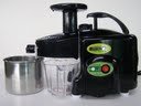Multi-purpose functions allow greater versatility, from juice extraction to soy milk production to making perfect pasta (with optional Accessory Kit). Juices wheatgrass, barley grass, and herbs. Magnetized, bio-ceramic juicing jug keeps juice fresh with no loss of nutrition or oxidation for up to 72 hours. Easy to use, easy to clean. Cleans in just three minutes! Constructed mainly of recyclable materials. The quietest machine on the market (60 bB)! Collection jug prevents excessive build-up of froth. Makes nutritious ice cream, nut butters, jams, and baby food. Grinds coffee, grains, and nuts. Comes with: Three screens - normal-hole (for vegetables and wheat grass), large-hole (for pulpy fruit), and crush screen (for soaked grains and beans); Two Tampers (plastic and wooden); Magnetized 1-liter jug; Extra end cap, and One cleaning brush. The multi-purpose kit is Optional and not included with this offering Functions of Mulit-Purpose Kit (Optional Feature): * Produces less pulp in juice. * Separates seeds when juicing grapes, without crushing the seeds * Produces less foam with wheat grass and barley grass juice. * Extrudes Pastas, Nut Butters, Baby Foods, Frozen Fruit Sorbet, Soy drink. * Grinding Hot Peppers, Coffee Beans, Sesame Seeds