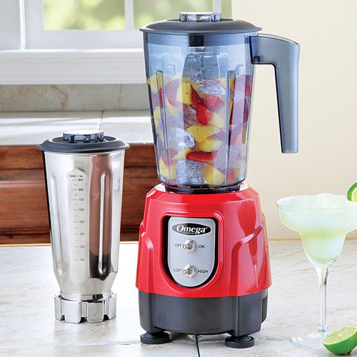 Omega BL390R 1-HP Blender, Tritan Copolyester and Stainless Steel Container Combo Pack, Red