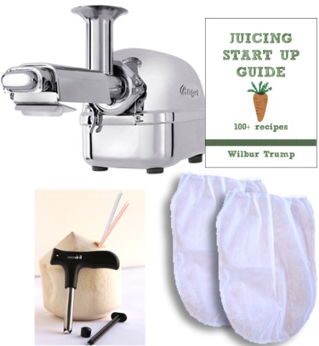 Includes Super Angel Juicer and "Juicing Start Up Guide" ebook with recipes, tips, and tricks to get you on your way, including juice feasting, weight loss and curing common ailments! over 100 juice recipes that taste great and are easy to make.--2qty Nut Milk Strainer bags for straining pulp from juices, and making raw fresh nutmilks- CocoDrill Coconut Opener tool easy and safely opens coconuts !