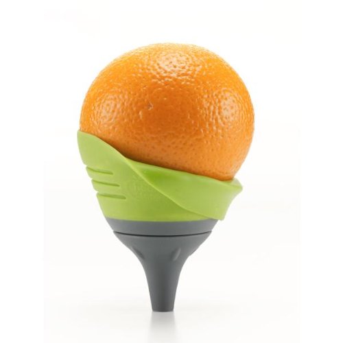 Soft pliable rubber citrus grip cup hugs fruit