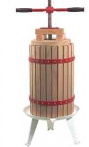 31168 Features: -Harvest fruit and wine press.-Made from American white oak.-Absolute must for home grape growers and wine makers.-Wine press has a low center of gravity that allows you to stand over the unit while pressing grapes for maximum yield.-Cast iron hardware.-Easy one-person operation.-Hardwood cage eliminates the need for maintenance.-Capacity: 16 Qt. Assembly Instructions: -No assembly required. Dimensions: -14'' High inner bucket.-Dimensions: 36'' H x 21.5'' W x 21.5'' D. Warranty: -One year warranty.
