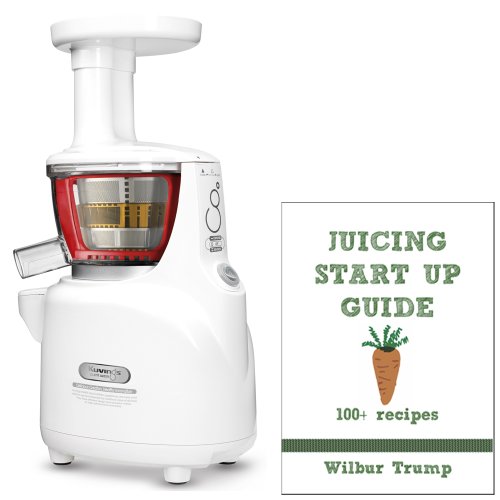 The Kuvings Silent Juicer - the universal juicer that meets all your juicing needs...From firm carrots to fine wheatgrass... The Silent Juicer is the last juicer you'll ever need. The Kuvings Silent Juicer may be quiet in its operation but it is loud with features. Its patented extraction technology takes advantage of its low speed to press and extract rather than grind and chew like other juicers do, retaining all the nutrients and enzymes, for a healthier more natural juice every time. Enjoy more, higher quality juice in less time. The Silent Juicer is the first of upright juicers to offer all BPA-Free Juicing components, including juice and pulp cups. No other upright offers this. The Silent Juicer has been designed to fit on your counter under most kitchen cabinets fully assembled with the pusher in place. The Silent Juicer operates at 40-50db, which makes it the quietest juicer available today! Features of the Kuvings Silent Juicer Healthier * Low speed extraction method - The Silent Juicer presses and extracts juice instead of grinding, to retain all the nutrients and enzymes for a healthier, natural juice every time.----"Juicing Start Up Guide" has over 100+ juice recipes that are easy to make and taste great! Also includes tips, and tricks - juice feasting, weight loss, cures for common ailments and more!